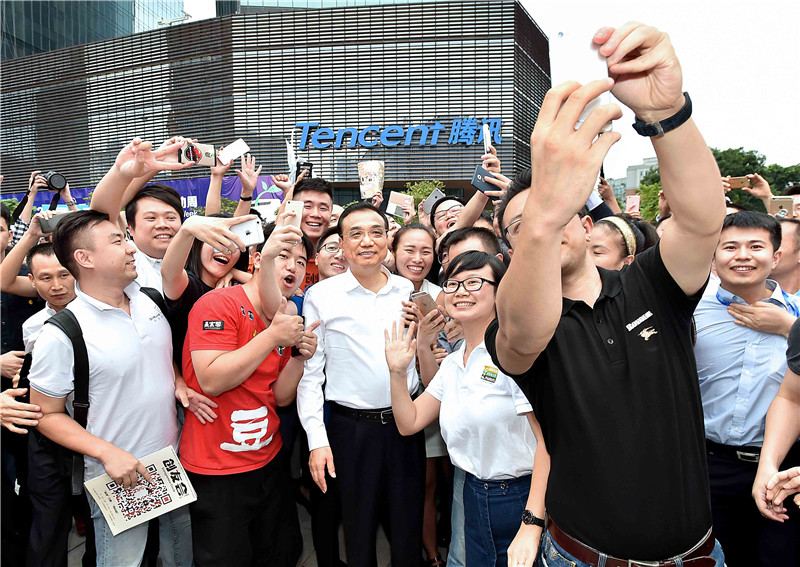 2016年10月12日,李克强在深圳全国“双创”周活动主会场深圳湾创业广场与年轻创业者合影留念。(资料图)